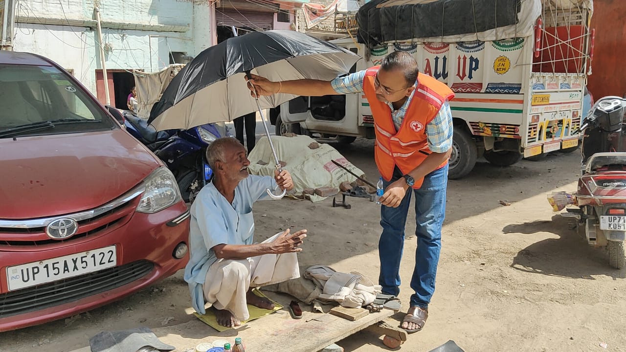 Umbrellas And Clothes Were Distributed To Protect From The Harsh Sun.