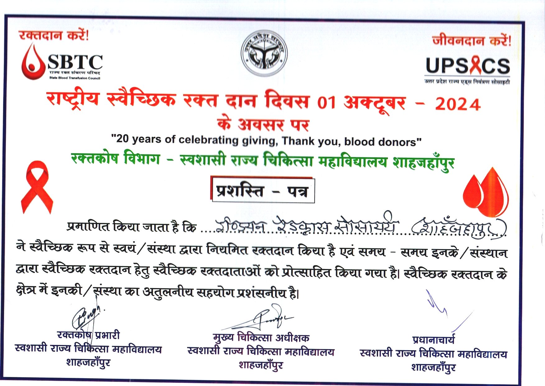 Red Cross Society Was Honored On Blood Donation Day